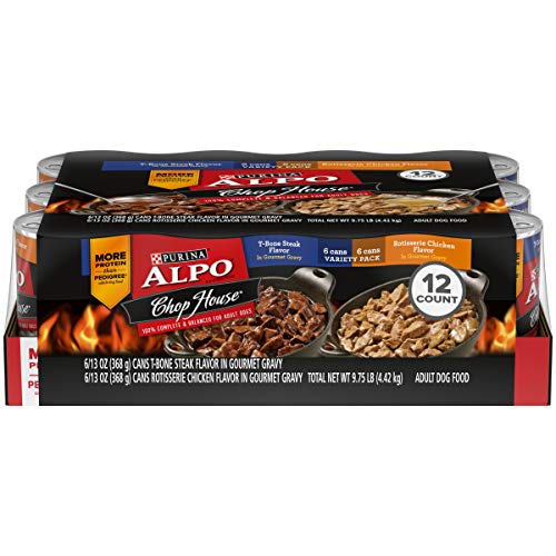 - Twelve (12) 13 Oz. Can, Purina Alpo Chop House T-Bone Steak & Rotisserie Chicken Flavor Adult Wet Dog Food Variety Pack