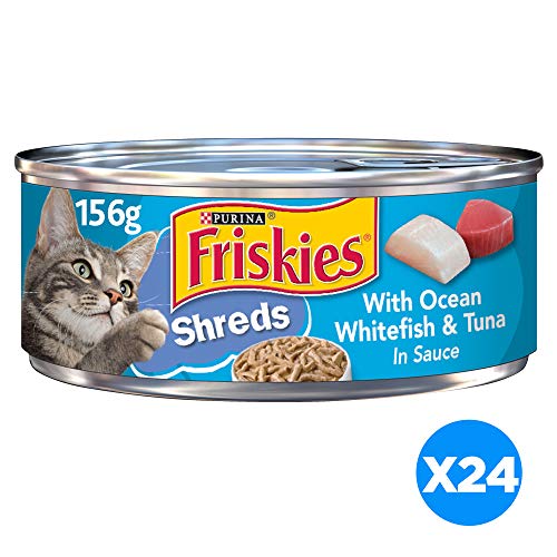 Purina Friskies Wet Cat Food, Shreds With Ocean Whitefish & Tuna in Sauce - 5.5 oz. Cans (Pack of 24)