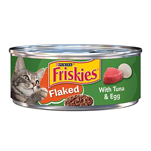 Tempt your cat's taste buds with Purina Friskies Flaked With Tuna & Egg wet cat food, which is checked for quality and safety. Real tuna and egg combine to create a delightful taste sensation, and the tender flaked texture is sure to please her palate. With essential vitamins and nutrients in every serving, you can feel good about serving this delectable recipe to your favorite feline. Open a pull-tab can of this Friskies wet cat food, and let the rich aroma lead her to her dish, all while knowing she's getting a meal that's 100% complete and balanced for the growth of kittens and the maintenance of adult cats. She'll love the small bites of yum in every serving, and you'll love giving her a meal that has her licking her dish clean and begging for more. With so much tasty goodness in each bite, this Purina Friskies Flaked recipe makes it easy to show your cat that you pay attention to her cravings for seafood flavors.Ingredients