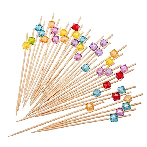 - 100 Counts Wooden Cocktail Picks with Multicolor Bead End. Length: 4.7inch