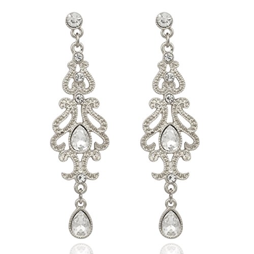 Silver Earrings Q&Q Fashion Art Deco 20s 30s Flapper Gatsby Austria Crystal Bridal Silver Dangle Earrings