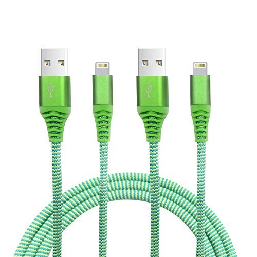 Qual80 Heavy Duty Cable Replacement Compatible with Apple iPhone 10, 8 Plus, 8, 7 Plus, 7, 6S Plus, 6S, 6 Plus, 6, 5SE, 5S, 5C, 5 (1m/3.2ft Cord) (Green White 2 Pack)