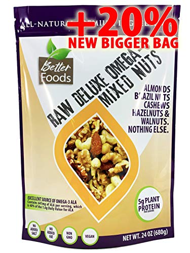 Betterfoods, Llc Part#: - Raw Unsalted Deluxe Omega 3 Mixed Nuts (Almonds, Brazil Nuts, Cashews, Hazelnuts and Walnuts) - All-Natural Non-GMO No Added Salt or Fat