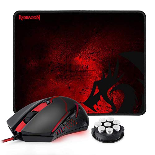 Redragon M601-BA Gaming Mouse and Mouse Pad Combo, Ergonomic Wired MMO 6 Button Mouse, 3200 DPI, Red LED Backlit & Large Mouse Pad for Windows PC Gamer (Black Wired Mouse & Mousepad Set)