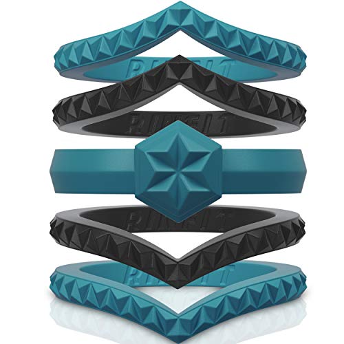 Lilcy Part#: - Rinfit Silicone Wedding Ring for Women Set of Thin & Stackable Rings. 5 Rings Pack. Comfortable, Soft Rubber Wedding Bands. Durable Wedding Rings Replacement. U.S. Patent Pending. Size 4-10