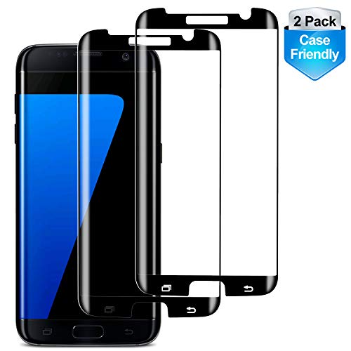 RUXELY S7 Edge Screen Protector (2 Pack), Case-Friendly Tempered Glass,Anti-Scratch,Anti-Bubble,9H Hardness,HD Clear Protective Glass for Samsung Galaxy S7 Edge(Black)