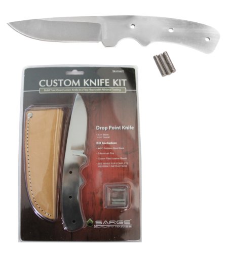 This 8 3/8" 440C stainless steel pre-form (tang and blade) is shaped, drilled and sharpened and comes with aluminum handle pins and a custom-fitted leather sheath. In a few hours, you will have a personalized fixed blade that suits your taste. Serge knives understands the importance of toting a quality knife and that is why they are committed to providing a wide selection of high quality cutlery for every imaginable purpose. Whether you are outdoors skinning game or indoors preparing to cook for your loved ones, Serge has affordable knives sets for any occasion. Made from top-grade stainless steel, Serge Blades remain sharp even after many years of use.Features: