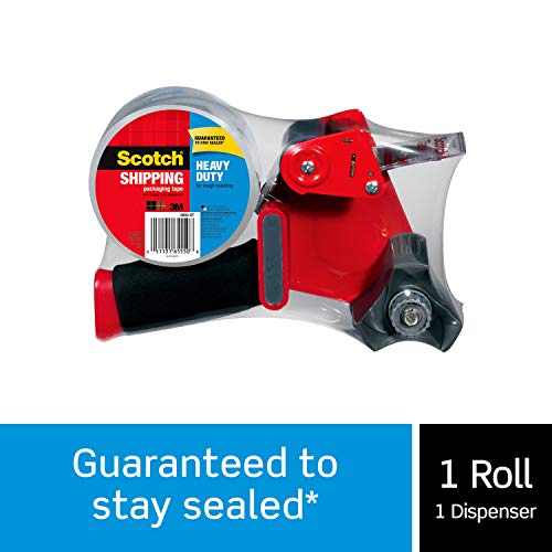 Scotch Packaging Tape Dispenser with Heavy Duty Shipping Packaging Tape, Designed for Standard 3" Core Rolls, Foam Handle, Retractable Blade and Adjustable Brake (3850-ST)