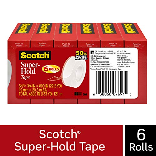 3M Office Products Part#: 700S6 638060076910 - Scotch Super-Hold Tape, Strong and Durable, Glossy Finish, Engineered for Sealing, 3/4 x 800 Inches, Boxed, 6 Rolls (700S6)
