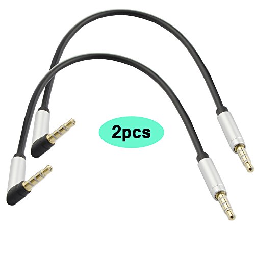 Seadream 2Pack 6 inch 4-Pole 3.5mm Male Right Angle to 3.5mm Straight Male Stereo Audio Cable Headset Extension Cable for Beats Dr. Dre Studio iPhone,M to M Audio Cable,Premium Quality Cable Black