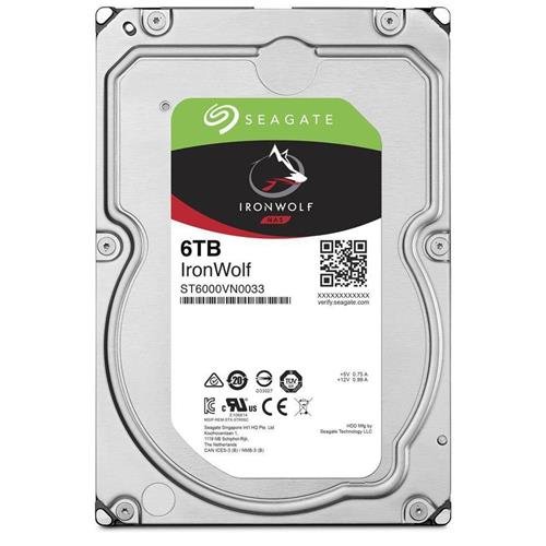 Purpose built for multi-user NAS environments, IronWolf is perfect for teams needing to store more and work faster. Designed for up to 8 bays and featuring 6TB and speeds of up to 210MB/s, these internal hard drives are specifically built for less wear and tear, little to no noise/vibration, no lags or down time, increased file-sharing performance, and lower power consumption., Easily monitor the health of hard drives using the integrated IronWolf Health Management system and enjoy long-term reliability with 1M hours MTBF and the included three-year limited warranty protection plan.Features: