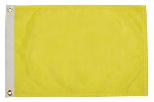 This 12" x 18" Yellow Quarantine Flag is also known as a courtesy flag. Its use is for boaters to signal their entry status into foreign countries via sea. The flag signifies you have entered foreign waters but have not yet cleared customs in the country they are entering. Flag etiquette for small boats entering the Bahamas is as follows: If US registered, fly the US Ensign on your starboard outrigger or radio antenna. When within sight of land in the Bahamas, run up the yellow quarantine flag on the port outrigger, signifying know you are in Bahamian water and have not yet cleared. After clearing into the islands, replace the yellow flag with the Bahamian courtesy flag, which now signals your home country and that you've cleared into the current one. When returning to the US, temporarily replace the US flag with the yellow one, until you've cleared Customs there.Features:
