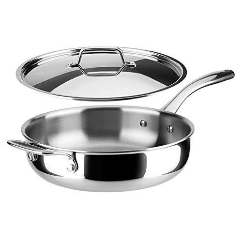 Duxtop Whole-Clad Tri-Ply Stainless Steel Saute Pan with Lid, 3 Quart, Kitchen Induction Cookware