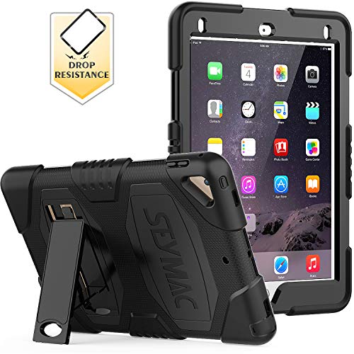 SEYMAC iPad 5th/6th Generation Case,iPad 9.7 Case Three Layer Heavy Duty Soft Silicone Hard Bumper Case with Kickstand for iPad Air 2/ iPad Pro 9.7 (Black)