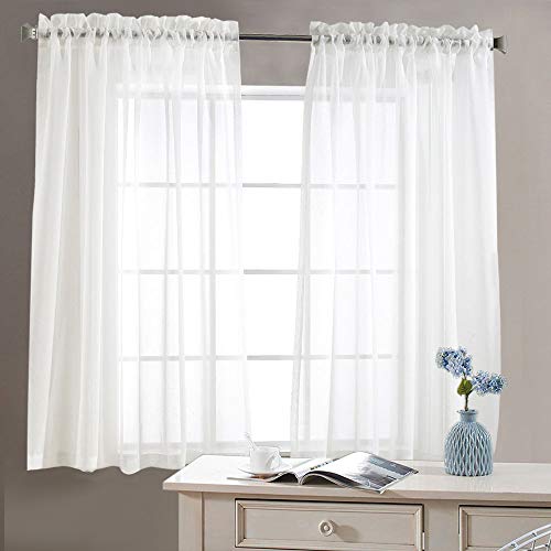 jinchan Sheer White Curtains for Living Room 63 inch Length Bedroom Window Curtain White Sheer Curtain Panels Rod Pocket 2 Panels