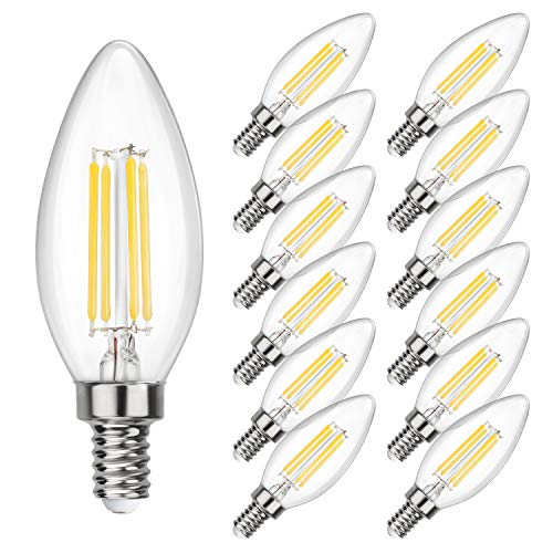 SHINE HAI Candelabra LED Filament Bulbs 40W Equivalent, 4000K Chandelier B11 LED Bulb E12 Base Decorative Candle Light Bulb, Pack of 12