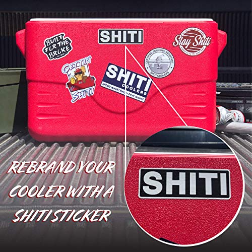 - SIMPLE BRAND STICKER: With your order, you'll receive 1 SHITI Coolers brand sticker. It measures 4.33" W x 1.5" H and features a simple black-and-white SHITI Coolers brand logo. You can add this sticker to nearly any surface - a hard hat, lunchbox, cooler, motorcycle, and more. It will give any surface an extra bit of edgy flair and showcase your funny side.