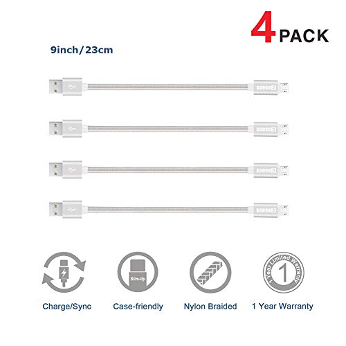 Cosoos Part#: CS-cable micro white US-04 - Short Micro USB Cable, COSOOS 4 Pack 9 Inch Nylon Braided Charging and Syncing Short Cords for Samsung, Kindle, Charging Station, Android Smartphones, Power Bank, PS4 (Silver,White)