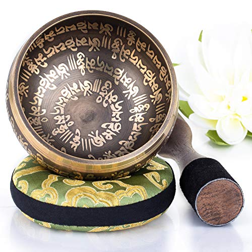 Looking for an excellent quality singing bowl set for an unmatched price? Then our Peace Mantra Design Singing Bowl Set is your best choice. The bowl is made in Nepal using high quality metal alloys and comes with a durable wooden mallet and an eye catching silk cushion. Singing bowls are one of the ancient Tibetan meditation tools. They were historically made throughout Asia, especially Nepal, China and Japan. In some Buddhist practices, singing bowls are used as a signal to begin and end periods of silent meditation. According to ancient Feng Shui practices, rhythms created by bowl scares away all the evil spirits and ghost. The fascinating blend of vibrational harmonics produced by Tibetan Singing Bowls are widely used for meditation and space clearing. This pleasant and long-lasting sound also helps to reduce stress, alter consciousness and create a deep sense of peace, well-being and better health. Our singing bowls are widely used by professionals around the world, including health care professionals, psychotherapists, massage therapists, school teachers, musicians and spiritual teachers. Also, people use this as a music instrument or like to keep it as modern home décor. You can easily play the bowl either by rubbing the mallet around the rim or by gently tapping the sides of the bowl. These two methods produce quite distinctive sounds. We always care about the quality and the durability of our singing bowl sets. Our goal is 100% satisfied customers. But, if you are not satisfied for any reason, just return the product within 30 days for a full refund.So just click on the "ADD TO CART" button at the top of this page order your Tibetan Singing Bowl today!Features: