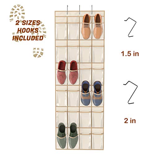 Simplized Part#: 8542012741 789398803140 - Simplized Over The Door Shoe Organizer | 24 Large Pockets with 2 x 4 Hooks | Heavy Duty Fabric | Hanging Shoe Rack Over The Door | Hanging Shoe Organizer for Closet Shoes Storage | Hang On Behind Back