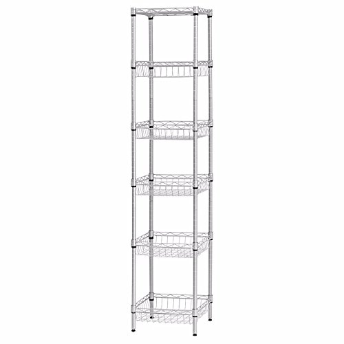 Singaye Part#: AMJ-223S 732140098585 - SINGAYE Storage Shelves, 6-Tier Wire Shelving Unit with Baskets Storage Rack Corner Shelf Shelving Adjustable Storage Shelf, 13.4" D x 13.4" W x 51.2" H,Silver