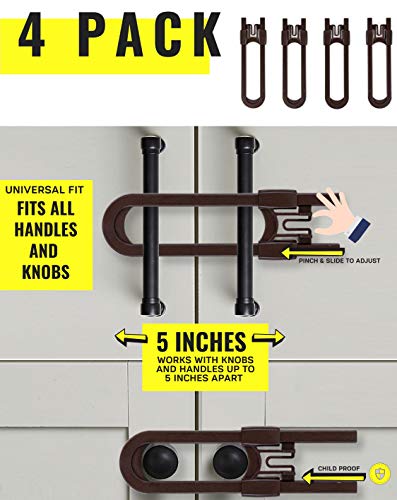 Sliding Cabinet Locks for Child Safety | Baby Proof Your Kitchen, Bathroom, and Storage Doors | Childproof Safety Locks for Knobs and Handles | Easy Install (4 Pack, Brown)