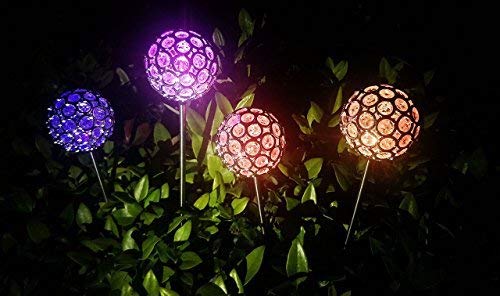 GARDEN LIGHTS SOLAR POWERED: Four Solar CRYSTAL BALLS stakes will be the perfect addition to a beautiful yard. An instruction sheet is included for easy installation. To prevent breakage, be careful with the installation in "very hard dirt". A little care should be taken. Perfect for gifts for mom,. Enjoy the night!
