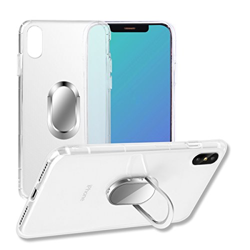 SPHLEAN iPhone X case,with Ring Holder Kickstand Function, 360 Degree Rotating Ring Holder Grip Case with Magnetic Car Mount Soft TPU Cover for iPhone 10 (Transparent)