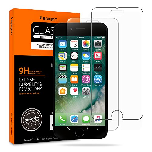 Spigen Part#: 042GL20802 - Spigen Tempered Glass iPhone 7 Screen Protector [ Case Friendly ] [ 9H Hardness ] for iPhone 7 (2 Pack)