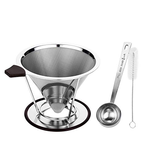 - 【METAL COFFEE CONE】The coffee filters are made of high-quality mesh and come with a separate stand, ensuring long-lasting & easy use. Added bonus: no extra paper filters are necessary - save money & the environment