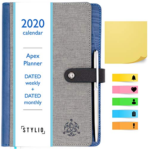 STYLIO APEX Planner 2020. Fully Dated Monthly, Weekly & Daily Calendar Planner. Bonus Planner Stickers & Executive Pen. Faux Leather Agenda. Academic/School Schedule for College Students & Teachers