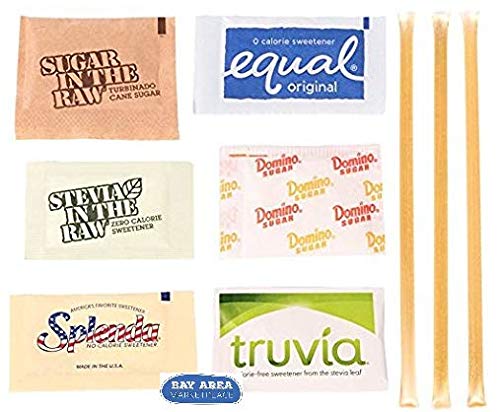 - Box Includes an Assortment of 7 Different Sugars and Sweeteners (325 Pieces Total)