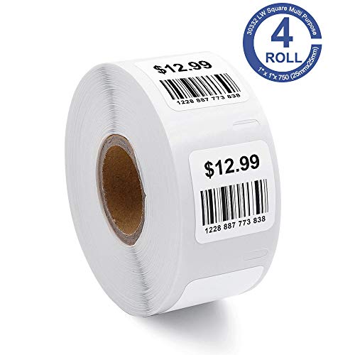 - INCLUDES 3000 LABELS: 4 rolls LW Square Labels (each roll is 1" x 1"). Color: bright white. Package: wrapped in black PE plastic bag to protect from yellowing through oxidation and sunlight