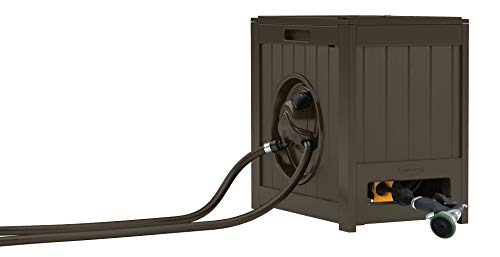 - DURABLE: The hose reel is made of durable plastic casing with a wood-like texture to match your outdoor decor