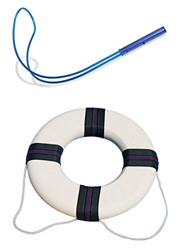 Make sure that you're prepared for any situation that may arise to ensure that you, your family, and all of your guests maintain safety while enjoying your pool this summer. This strong and lightweight **swimming pool safety hook** from Swimline quickly connects to all standard telescopic swimming pool poles and can be a lifesaving piece of equipment. **Includes a Life Preserver Ring Buoy!**Features: