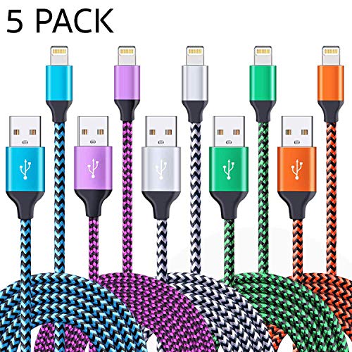 SyncTech Phone Cable Charger 3FT 5 Pack Cord Nylon Braided USB Syncing Fast Charging Compatible with Phone XS MAX XR X 8 8 Plus 7 7 Plus 6s 6s Plus 6 6 Plus (A.) 5 Pack - 3 Feet
