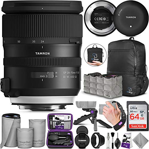 - INCLUDES: Tamron SP 24-70mm f/2.8 Di VC USD G2 Lens for Nikon F + Tamron Tap-in-console For Nikon + AirBag Packable Bag and Camera Insert + SanDisk 64GB C10 Ultra UHS-I SDXC Memory Card + Altura Photo Mini Tripod with Pistol Grip + Altura Photo Rapid Fire Wrist Strap + Altura Photo Hard-Shell Case + Altura Photo Accessory Kit + 3 Sizes MagicFiber Microfiber Lens Pouch