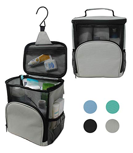 - | PRACTICAL DESIGN | Newly designed hanging shower tote, large enough to fit all of your toiletries, compact enough for traveling. New large metal hook