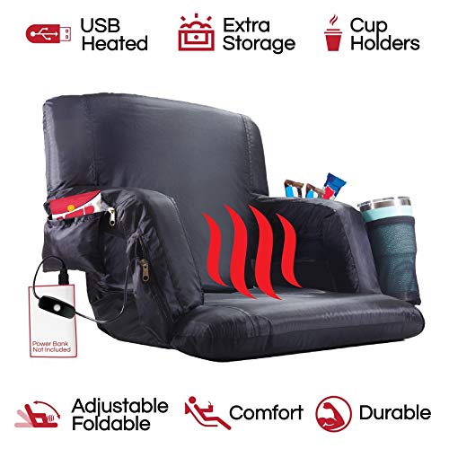 POP Design The Hot Seat, Heated Stadium Bleacher Seat, Reclining Back and Arm Support, Thick Cushion, 4 Storage Pockets Plus Cup Holder, Extra Wide Feature, Battery Pack Not Included