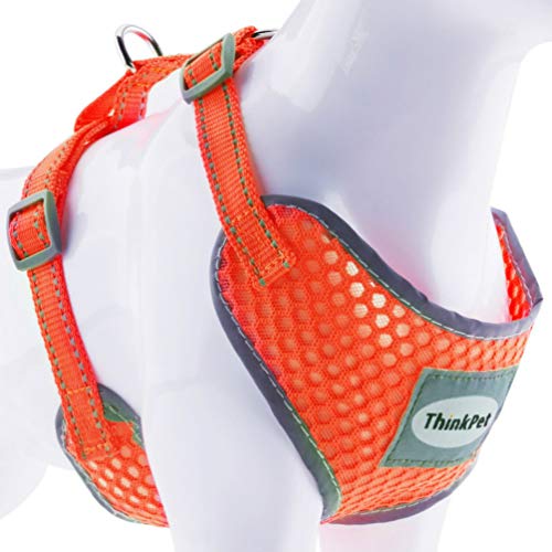 ThinkPet Reflective Breathable Soft Air Mesh No Pull Puppy Choke Free Over Head Vest Ventilation Harness for Puppy Small Medium Dogs and Cats Neon Orange Neck 13-20 in/Chest 18-30 in