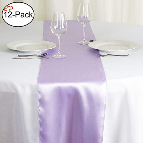 Tiger Chef 12-Pack Lavender 12 x 108 inches Long Satin Table Runner for Wedding, Table Runners fit Rectange and Round Table Decorations for Birthday Parties, Banquets, Graduations, Engagements