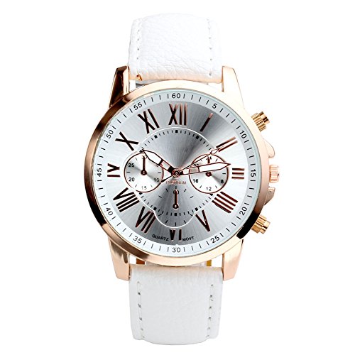 Top Plaza Fashion Women's Analog Watch, PU Leather Band Rose Gold Tone - White