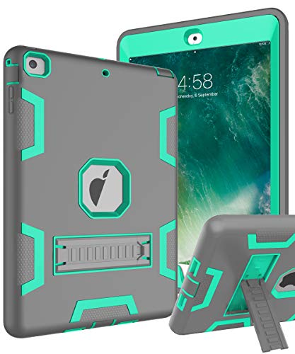 TOPSKY iPad Air Case, iPad A1474/A1475/A1476 Kids Proof Case, Heavy Duty Shockproof Rugged Armor Defender Kickstand Protective Cover Case for iPad Air Grey Green