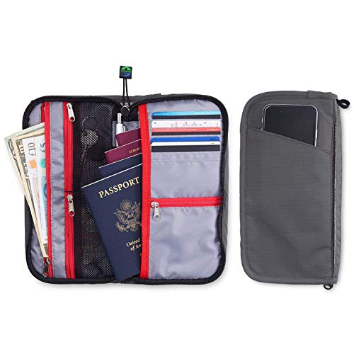 Travel Wallet Organizer For Family - Fully Embedded RFID Blocking Fabric - Zippered Portfolio Pouch for up to 6 Passports