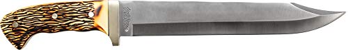 Uncle Henry Bowie Full Tang Fixed Blade Knife, 7Cr17MoV High Carbon Stainless Steel Bowie Blade, Staglon Handle with Nickel Silver Guard, and Black Nylon Belt Sheath.Features: