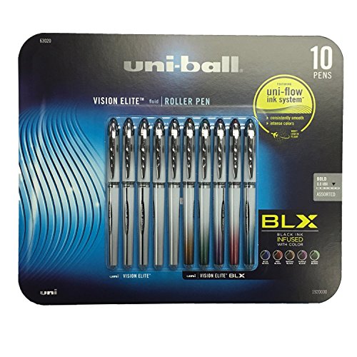 Uni-Ball Vision Elite Stick Rollerball Pens, 0.8mm, Bold Point, Assorted Colors, 10-Count
