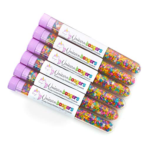 Need a cute gift idea? Our 6 Pack of Unicorn Boogers are too cute to pass up! These tasty candy pebbles come in a variety of fruit flavors.Made with key lime, lemonade, watermelon, wild berry, tangerine and blue raspberry candy pebbles, and glimmer white sugar crystals!