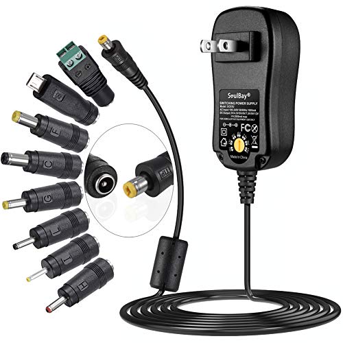 [Upgraded Version] SoulBay Universal AC/DC Adapter Multi-Voltage Regulated Switching Power Supply with 8 Selectable Adapter Plugs, for 3V to 12V Home Electronics - 2Amps Max