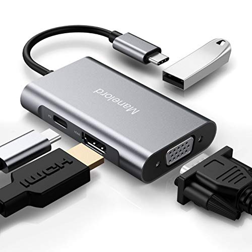 USB C to HDMI VGA Adapter, with 4K HDMI, Dual Screen Display, Manelord USB c hub, 87W PD Port, USB 3.0, Compatible with Nintendo Switch, MacBook Pro/Air/ipad Pro, Dell XPS, Samsung More