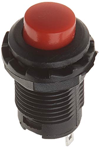 Feature: 2 terminals, red round cap push button, momentary type, 1NO(Off) contact type, 12mm mounting hole diameter. The push button switch is used in industrial controlling circuits for controlling in electromagnetic starter, Contactor, Relay and other electric circuits. .Features: